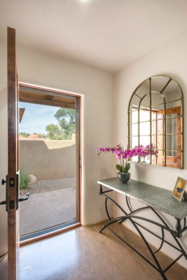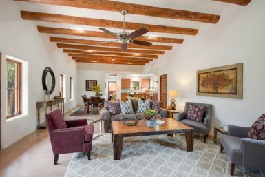 Unit G : This 1,827 sq ft. Territorial style home enjoys the privacy of the Southwest corner of the compound while maintaining an entryway view of Canyon Road.